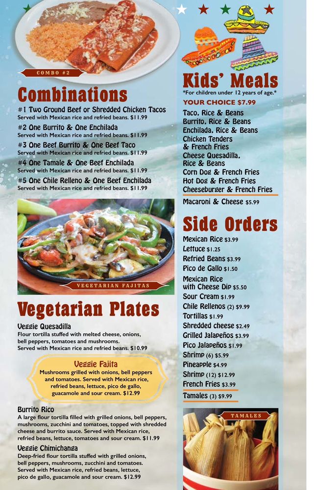 marinated grilled shrimp, cooked with bell peppers, onions, and tomatoes. Served with Mexican rice, beans, and tortillas.